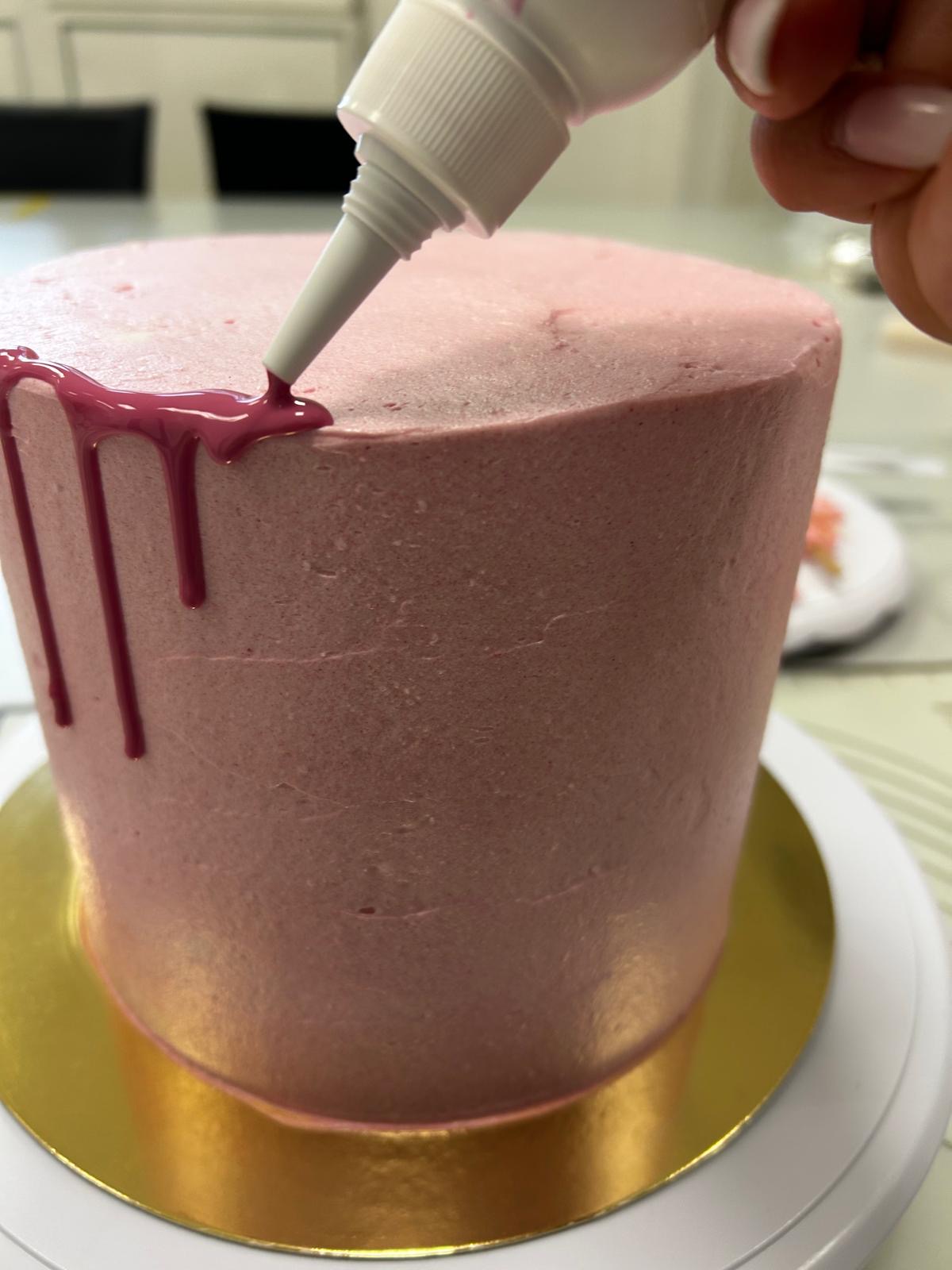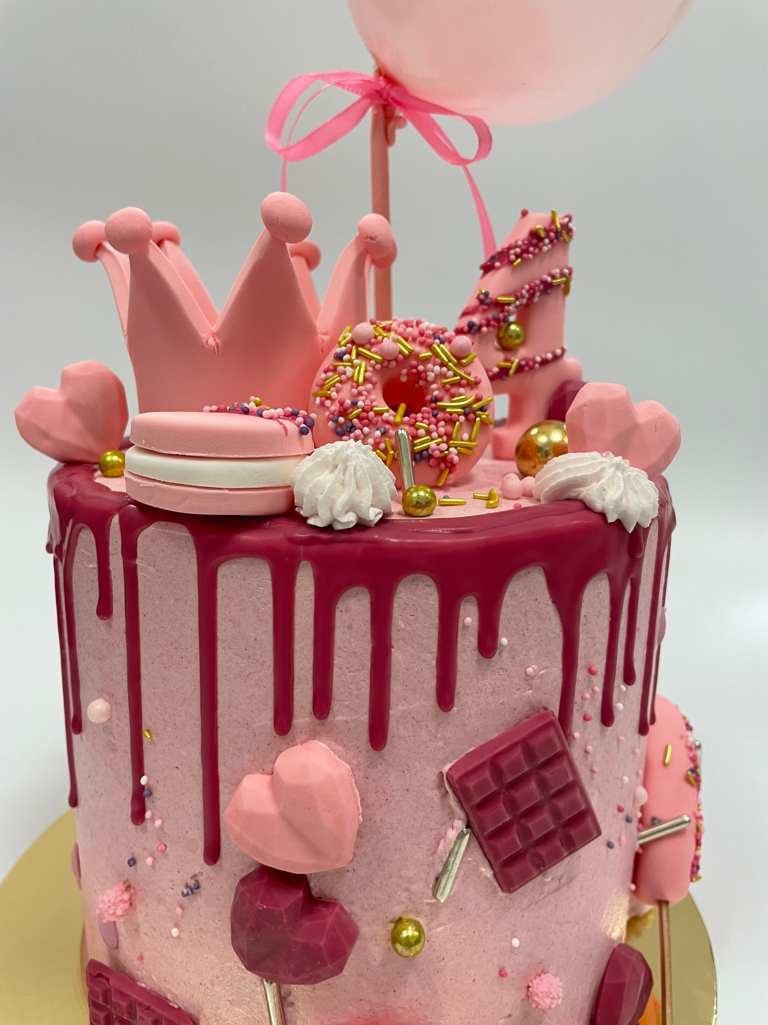 Der Kurs richtet sich an Anfänger und interessierte Hobby-Bäckerinnen. In unserem hellen Schulungsraum in 60437 Frankfurt stellen wir an diesem Tag in entspannter Atmosphäre einen hohen Princess-Cake (18 cm Durchmesser) her. Ihr lernt in diesem Kurs gleich mehrere Techniken: z.B. Böden schneiden, füllen, mit Creme glatt einstreichen, Drip auftragen, Herstellen von Schokoladen- und Fondantdeko.